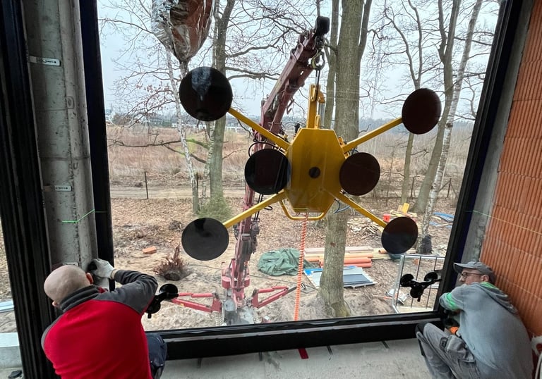Nasz sprzęt pozwala na precyzyjne, bezpieczne i sprawne przenoszenie oraz instalację ciężkich elementów szklanych – zarówno w pionie, jak i poziomie. Idealne rozwiązanie na budowach, w halach i przy montażu fasad.